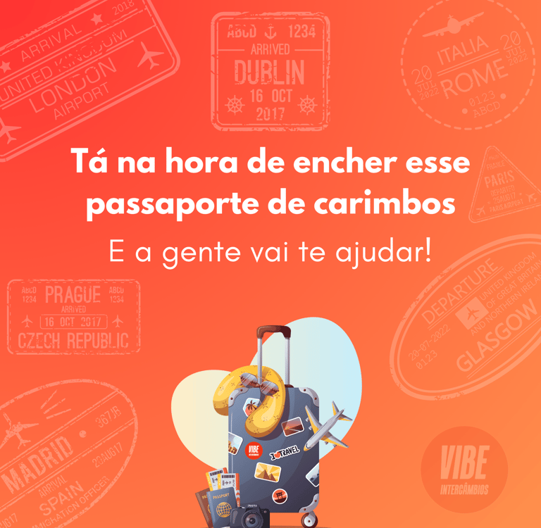 Você sempre sonhou em fazer um intercâmbio e explorar o mundo? Agora é a sua chance! A Vibe Intercâmbios está com uma promoção imperdível: Embarque Autorizado. Além de garantir um desconto especial, você ainda ganha um voucher da Ryanair para garantir mais um carimbo no seu passaporte. Não perca essa oportunidade única!
